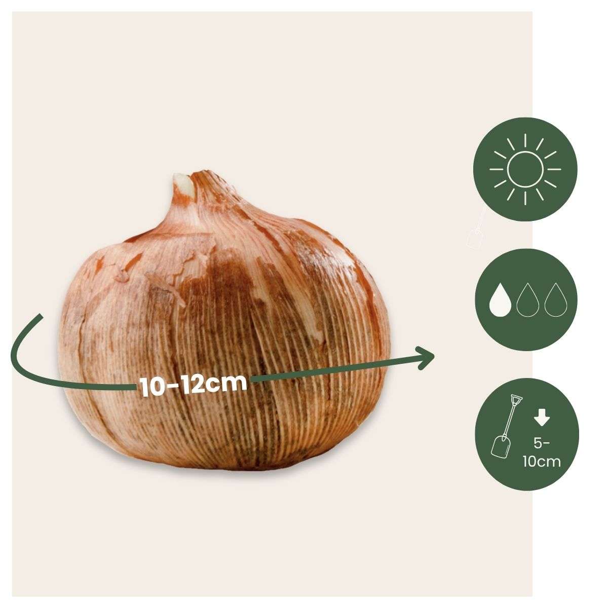 The flower bulbs have a circumference of approximately 7/8cm upon delivery.