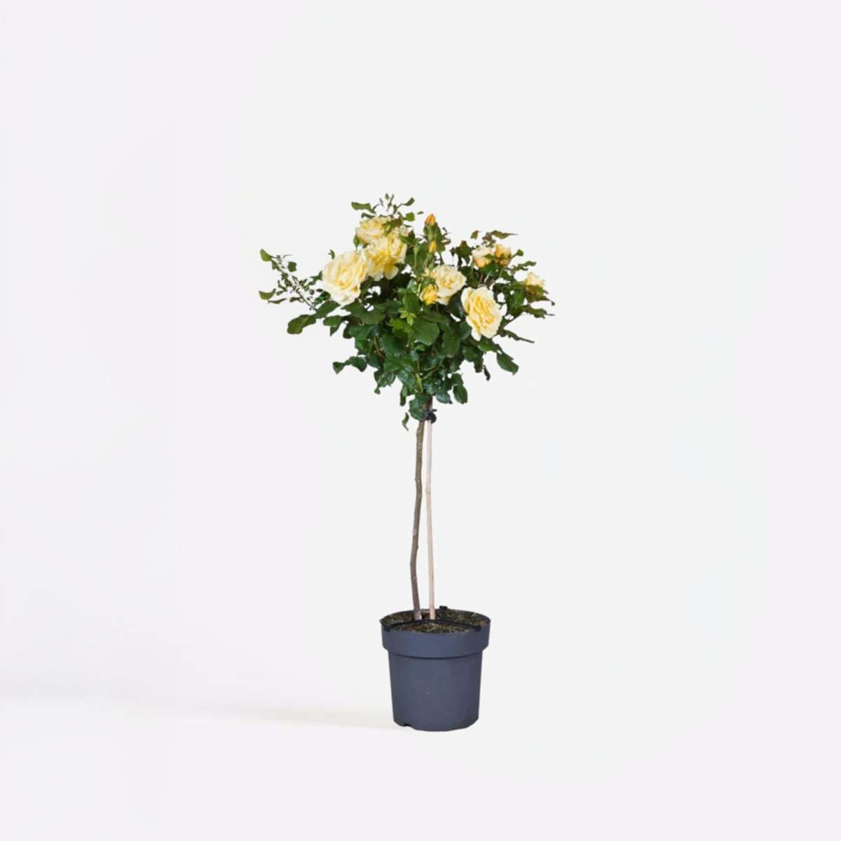 These standard roses can be placed indoors (in a bright place) or outdoors in a sunny place. However, avoid bright and direct sunlight in summer. Filtered sunlight is recommended. The best location for the standard rose is partial shade. Moreover, do not let the root ball dry out: water the plant regularly. Water every day in direct sunlight in summer. For best results, give rose fertilizer once a month. After the standard rose has flowered, the plant can be pruned to 5 centimeters above the stem. This leaves you with a compact lamp. The plant will then grow again and bloom again after two months.